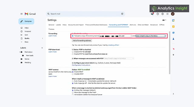 In the Forwarding and POP/IMAP tab, set up forwarding to effortlessly manage messages.