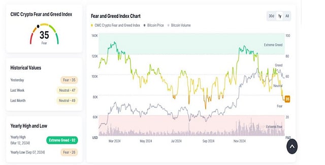 Forbes reports that the global crypto market cap is $3.30 trillion today. According to the data published on CoinMarketCap at the time of writing, the current Fear and Greed Index is 35.