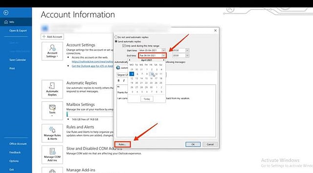 Customize Advanced Rules if Needed Outlook allows advanced rules like forwarding specific emails or sending different messages to certain senders. You can access these options under “Rules” in the Automatic Replies window, offering a tailored response system instead of a generic single auto-reply for everyone.