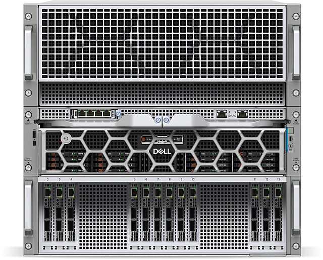 The Dell PowerEdge XE9712 featuring NVIDIA GB300 NVL72 offers efficiency at rack scale for training and 50 times more AI reasoning inference output and 5x improvement in throughput.With new Dell PowerCool technology, this platform helps businesses achieve greater power efficiency.