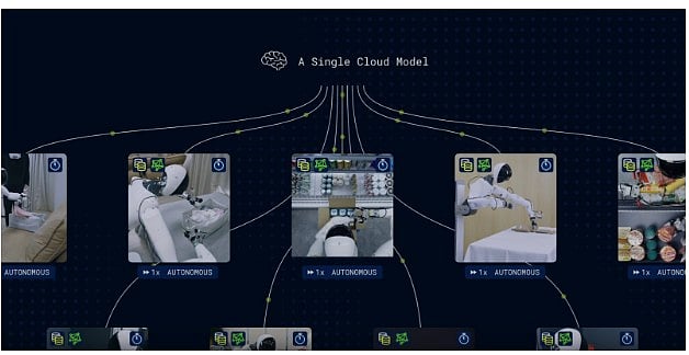 Second, learning happens across a fleet. Individual robots don’t improve in isolation. Data from multiple robots is aggregated in the cloud, where models are updated using powerful centralized computing resources. Those improvements are then shared back across the entire fleet. In effect, one robot’s experience becomes everyone’s experience.