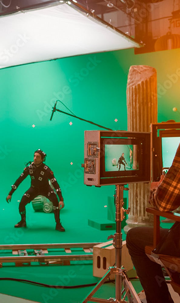 Green screens replace physical sets, allowing actors to perform scenes while digital backgrounds are added seamlessly in post-production.