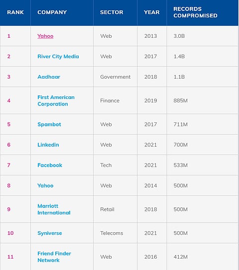 The Aadhaar data theft broke in January 2018. At the time, Aadhaar was the world's largest database, and the hack exposed data on more than 1.1 billion Indian citizens. The treasure trove of information stolen included names, phone numbers, addresses, and also biometric data. In addition, hackers also had access to bank accounts, even though it wasn't supposed to store this type of data.